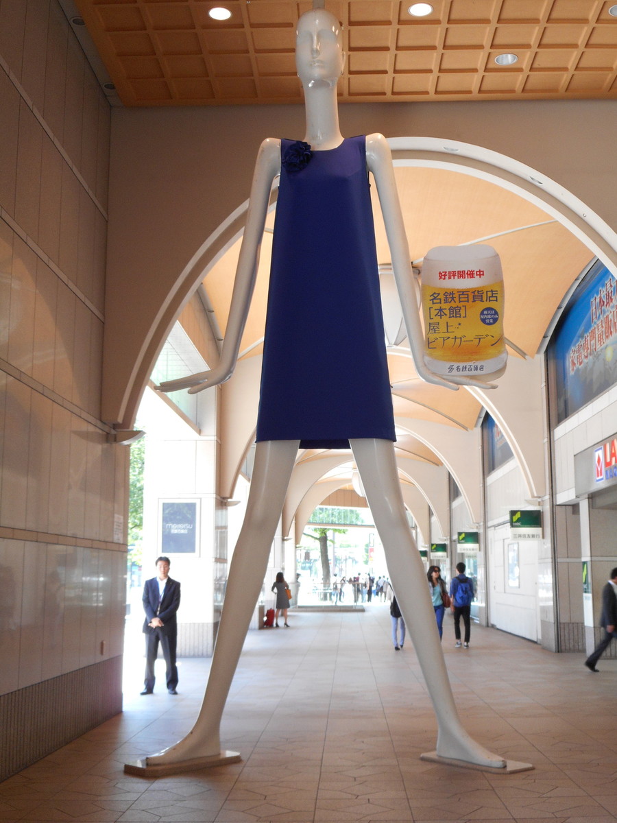 可別小看這尊假人模特兒「娜娜醬」,他可是名鐵百貨的「招牌模特兒」,擔負起為百貨公司活動宣傳的重責大任。娜娜醬在日本昭和48年(西元1973年)誕生,當時作為紀念名鐵百貨SEVEN館開業一週年的吉祥物而設置於此處,不僅成為百貨公司的招牌吉祥物與廣告宣傳大使,更成為當地熱門的碰面地標。