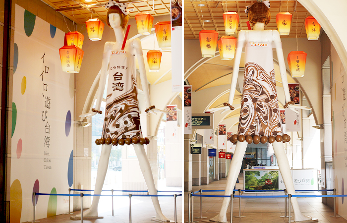 除了cosplay裝扮,也有為了觀光活動宣傳而做的造型,像是2020年與台灣觀光局合作的珍奶造型娜娜醬,裙擺與手環都用「珍珠」妝點,周圍的天燈裝飾也是台灣味十足呢~