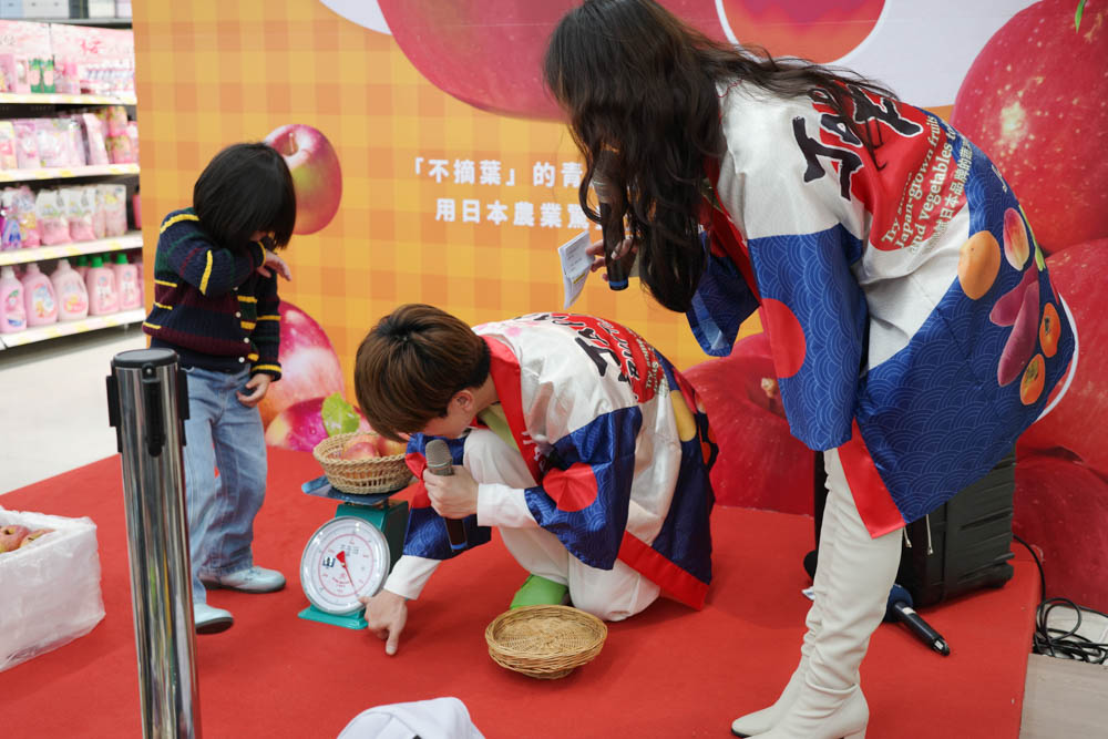 其中最考倒蔡阿嘎與粉絲們的就是蘋果猜重量的遊戲,因為「豐葉蘋果」多汁又大顆,就算是平常有買菜的粉絲們也難以推測豐葉蘋果究竟有多重,而參賽者中也有超可愛小朋友協同家人參加與人父蔡阿嘎俏皮互動,場面超級溫馨甜蜜。