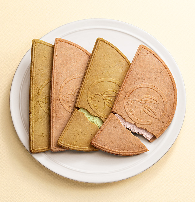 印有月亮與兔子圖案的「鎌倉半月」,輕甜細膩的仙貝餅皮,搭配抹茶奶油與紅豆奶油內餡,甜而不膩,口感層次豐富,讓人一試成主顧。除了基本款抹茶與紅豆奶油外,還會根據季節推出白桃、花生等限定風味。推薦將經典口味與限定口味一同購買,來場美味的食感比拼,享受不同風味的樂趣!