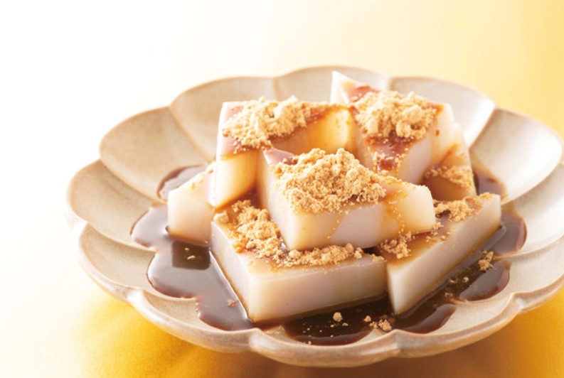 品嚐時,先撒上香氣濃郁的黃豆粉,再淋上濃厚黑糖蜜,讓香甜與醇厚的風味完美交融,帶來層次豐富的和菓子體驗,每一口都令人回味無窮。久壽餅特別製作成三角形,因為自古以來,三角形被視為能驅邪避厄的吉祥象徵。這樣的設計不僅便於分食,更寓意著帶來平安與好運,讓每位品嚐者都能感受到來自傳統和菓子的祝福。
