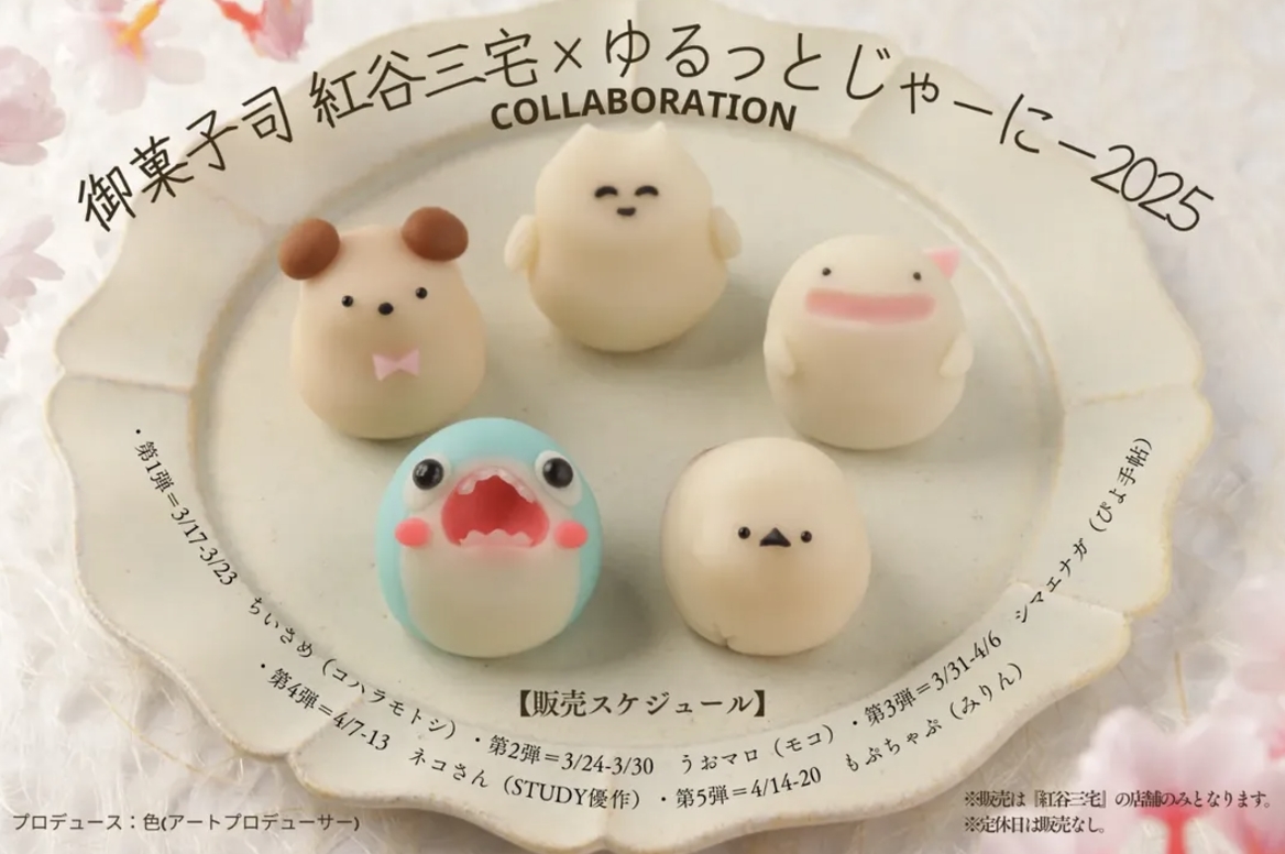 「御菓子司 紅谷三宅」不只有常態性販售的可愛造型和菓子,也會因應時節推出季節限定的特殊造型和菓子,甚至在這次還與五位作家合作,推出五款作家聯名造型和菓子。