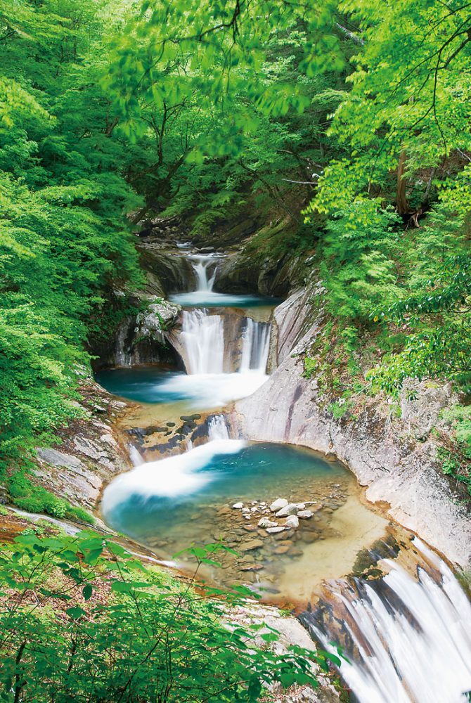 位於秩父多摩甲斐國立公園內的西澤溪谷,是由巨大的花崗岩長年侵蝕所形成的壯麗溪谷,也被譽為「奧秩父最後的秘境」,至今仍保有令人讚嘆的原始自然風貌。這裡最著名的景觀,是入選「日本百大名瀑」的「七釜五段瀑布(七ツ釜五段の滝)」、以及「龍神瀑布(滝や竜神の滝)」、「三重瀑布(三重の滝)」等多座造型各異的瀑布,交織成壯觀的溪谷美景。