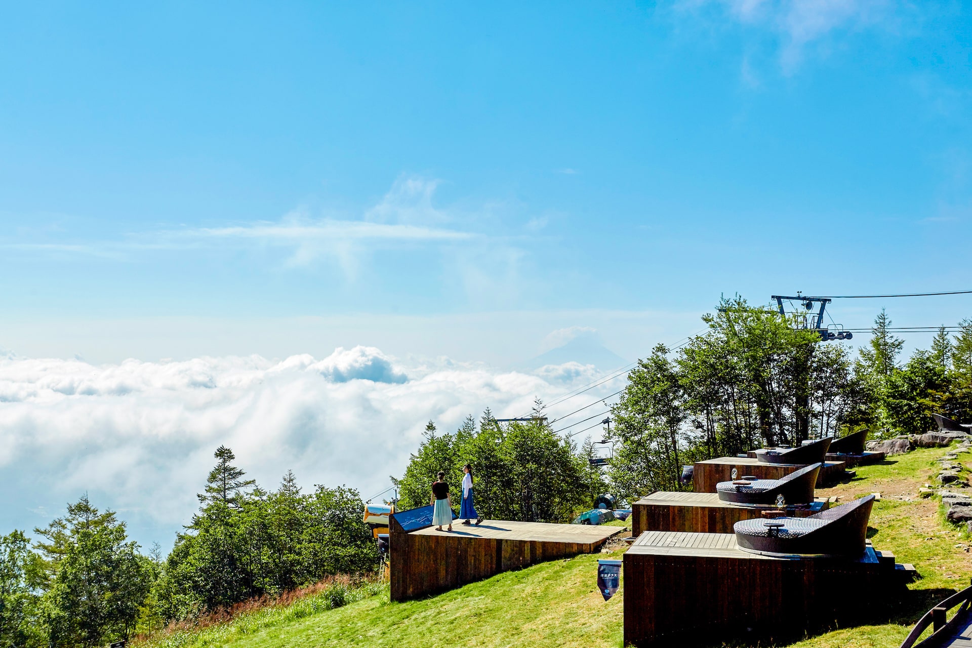 清里Terrace(清里テラス)位於八岳山麓的高原度假村「Sun Meadows 清里(サンメドウズ清里)」內,搭乘全景纜車登上約1900公尺的高地,即可抵達。站在視野毫無遮擋的露臺上,富士山、南阿爾卑斯山、甲府盆地與一望無際的藍天就在眼前,令人屏息的壯麗景色撲面而來,帶來無比開闊的解放感。