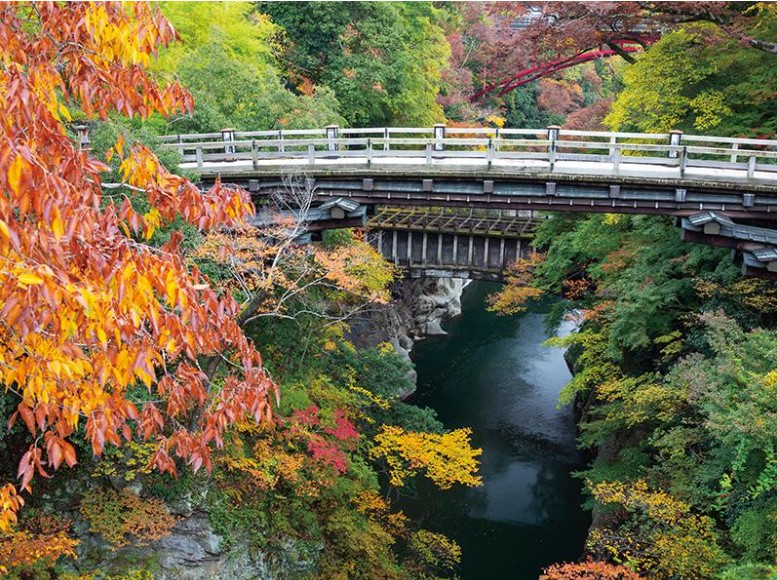 猿橋是日本三大奇橋之一,全長30.9公尺、寬3.3公尺、高度31公尺,其特色是不設橋墩、由兩岸向外延伸的四層撐木支撐而成,是一座罕見的橋梁建築。這座橋與周圍自然景觀相互融合,構成一幅美麗的畫面,也曾出現在歌川廣重的浮世繪《甲陽猿橋之圖》中,更被列為國家名勝。