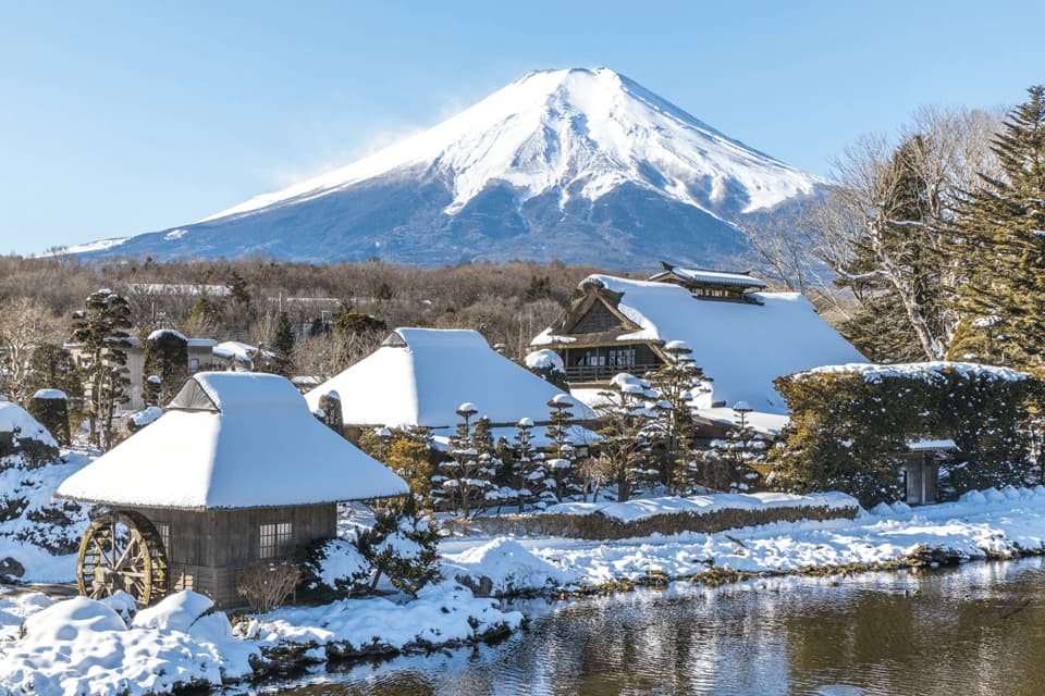 說到富士山,許多人第一個想到的就是河口湖。作為富士五湖之一,河口湖擁有最長的湖岸線,四季風景如畫,春有櫻花、夏賞薰衣草、秋觀紅葉、冬望雪景,與富士山交織出絕美畫面。其中最不可錯過的是晴天無風時才能看見的「倒映富士」,富士山倒映在湖面上的夢幻景象令人驚艷,尤其河口湖北岸是絕佳的攝影熱點。冬季空氣清澈,是欣賞富士山與倒映美景的最佳季節。