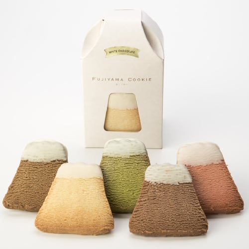 餅乾以富士山為造型,輪廓栩栩如生,表面更透過特殊工法打造出如山肌般的細緻紋理,充滿巧思與質感。口味上共有五種風味,並細分為原味、加料款與白巧克力款三種形式,合計十五種豐富變化,無論是自用還是送禮,都能依喜好自由挑選,讓人一邊品嚐、一邊享受選擇的樂趣。