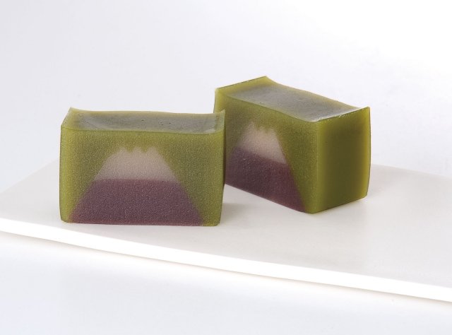 「富士山羊羹」是位於富士山腳下的和菓子專門店「富士菓匠金多留滿」的代表性商品。這款羊羹以富士山為造型靈感,外觀獨特、極具紀念價值,使用北海道精選小豆製作,並以富士山湧出的伏流水多次沖洗、細心熬煮而成,呈現出細膩綿密的口感。羊羹中富士山的主體部分以小豆為主,底層則搭配清新的抹茶,濃郁與清爽交織出雅緻的甜味,層次豐富且不膩口,是一款外觀與風味兼具的和菓子。