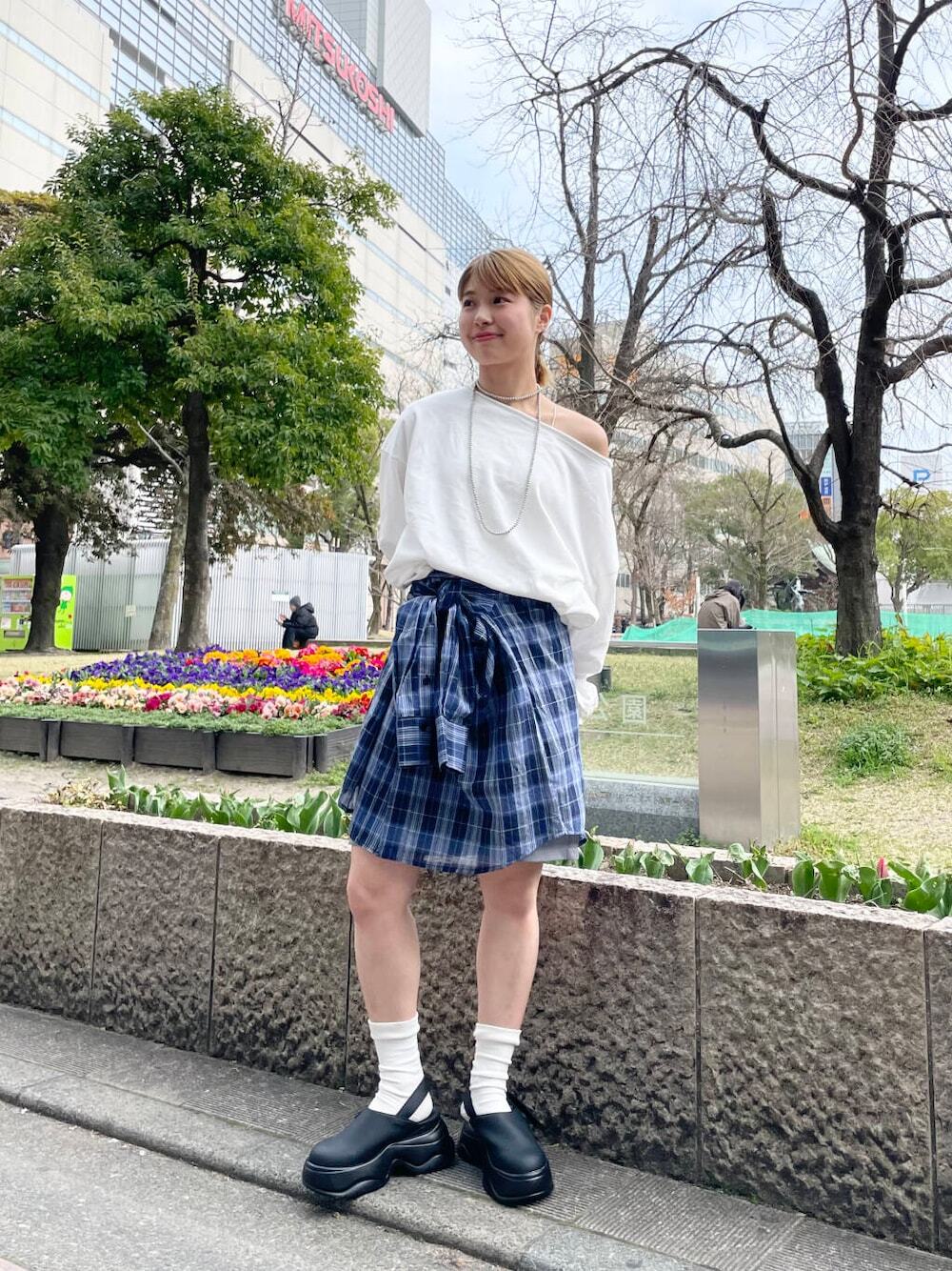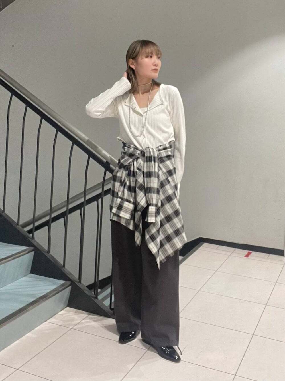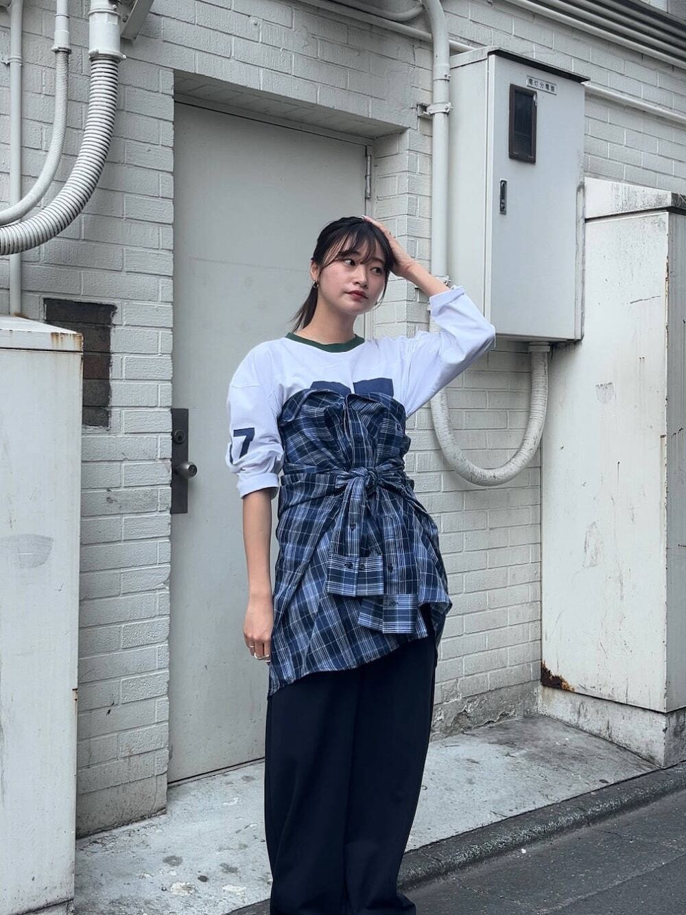 LOOK 03.格紋襯裙 + 長褲