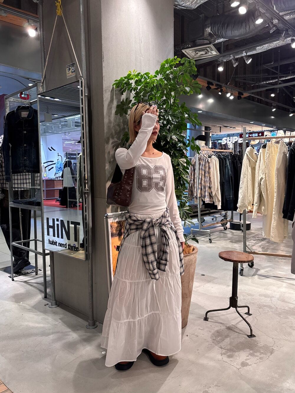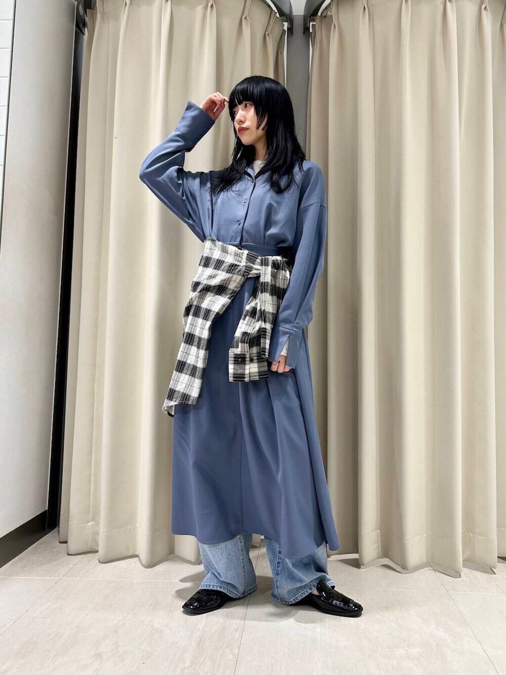 LOOK 04.格紋襯衫裙 + 長裙