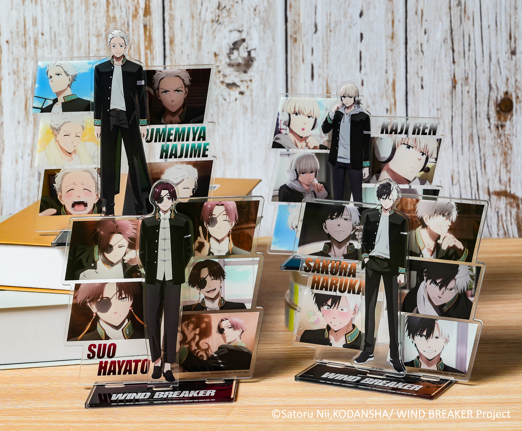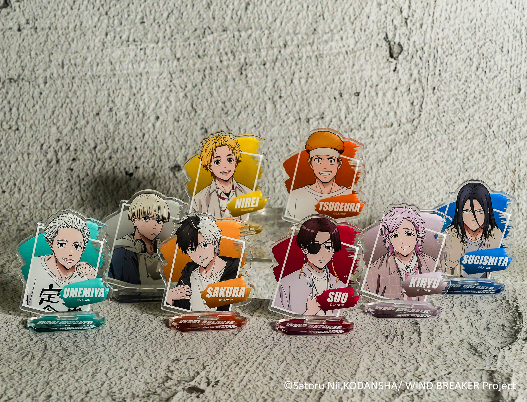 店內推出七大拍照打卡點,首推有著防風鈴和獅子頭連成員的「主角群打卡牆」和各有特色的「私服街拍」區,最後別忘了到「主視覺區」和柘浦一樣把防風鈴的口號大聲唸出來!現場推出近百款全新周邊商品,光是擺桌上就帥炸的角色「組合立牌」、兼具實用與手作樂趣的「壓克力存錢筒」和大小兩種尺寸的「滑鼠墊」,不論是喜歡Q版、制服風或私服,通通都能滿足你!單筆消費滿750元,就可以把有著防風鈴集團標誌、梅宮、蘇枋和櫻等四款「磁鐵」帶回家,款式隨機贈送,送完為止,粉絲們先搶先贏!