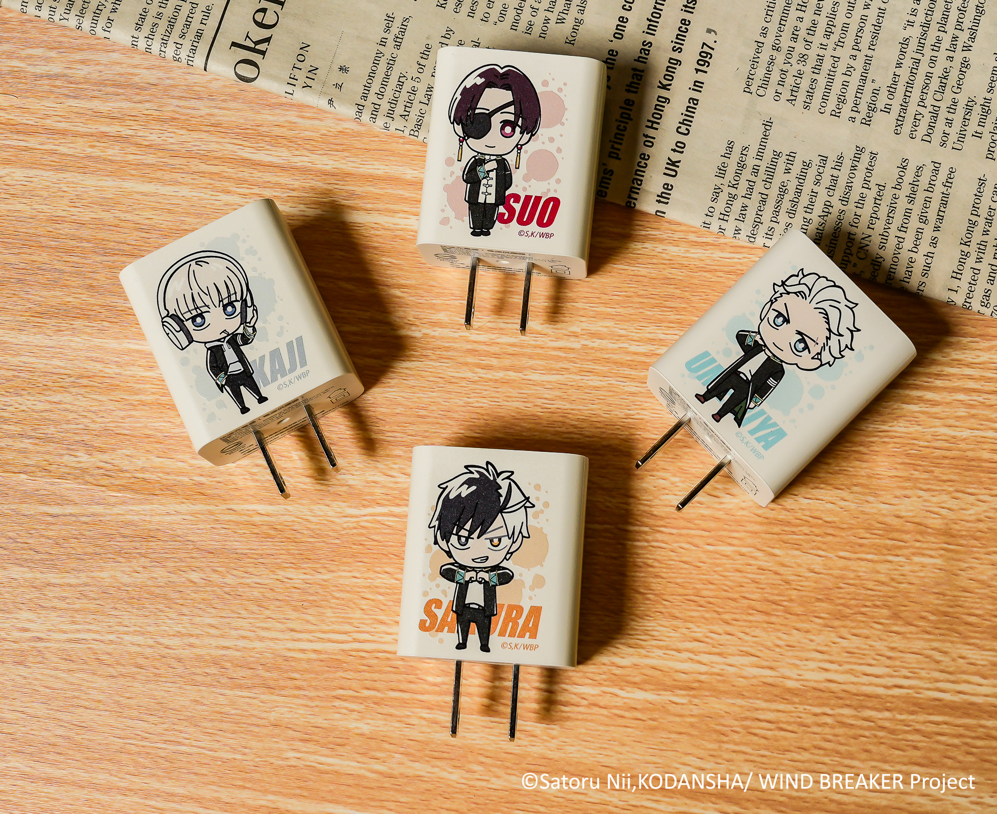補充水份就用印有Q版梶、蘇枋、櫻和梅宮的「冷水瓶」吧,小小一瓶方便攜帶!喜歡驚喜感就要抽爆共有梶、榆井、櫻和柊等七款的「小立牌」,不到撕開那刻不知道會帶誰回家!也想加入高一聊天群組?那就把四款雙孔快抽「旅充」帶上,電量告急就看不到訊息嘍!外出用電腦就讓梶和梅宮等四款印有防風鈴集團標誌與名字的「小滑鼠墊」幫你大大提升工作效率。難擋絨毛魅力就把四款想天天抱著入睡「角色抱枕」帶回家,做工精緻連蘇枋的流蘇耳環和櫻的異色瞳都變得栩栩如生,還有,選不出來就四隻一起帶回家吧!