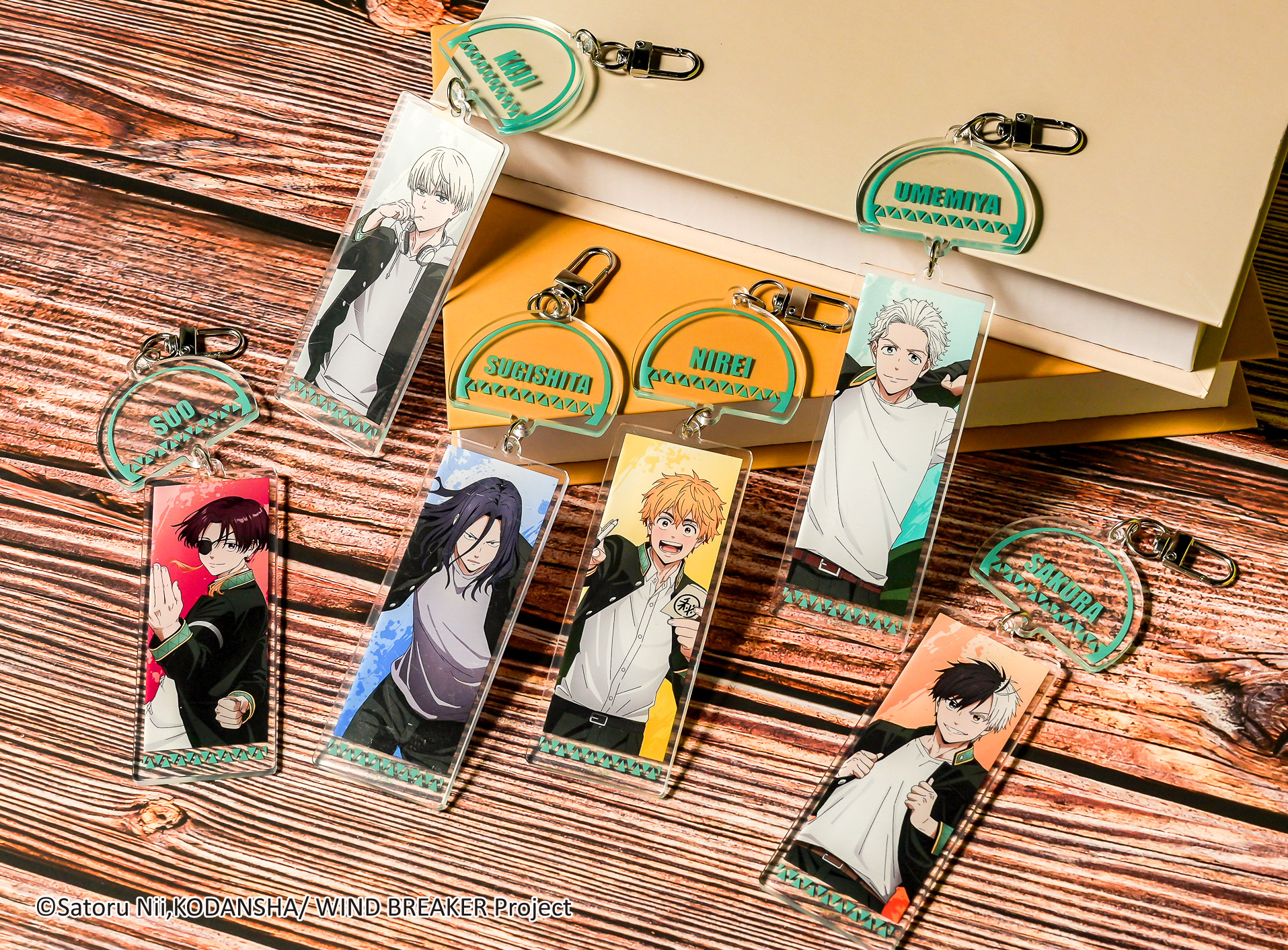 喜歡梅宮的反差萌、櫻的臉紅和總帶著耳機的梶嗎?那就把四款擺在桌上就好看的劇照「組合立牌」帶回家吧!總是忍不住買周邊嗎?守護錢錢就交給高一強者蘇枋和櫻的兩款「壓克力存錢筒」吧!想試試手氣?八款角色盲抽「光釉徽章」絢彩背景搭配微微立體的潑墨字樣質感百分百。想在家中打造滿滿防風鈴區嗎?先把一年級級長、副級長的滿版「長門簾」掛上,輕鬆改變氛圍,再把一閃一閃蘇枋、梅宮及櫻的「流沙杯墊」擺在桌上,最後釘上櫻臉紅吃著草莓蛋糕的「無框畫」就大功告成啦!最討厭桌面濕噠噠嗎?保持乾爽就交給梶、梅宮等四款「吸水杯墊」。