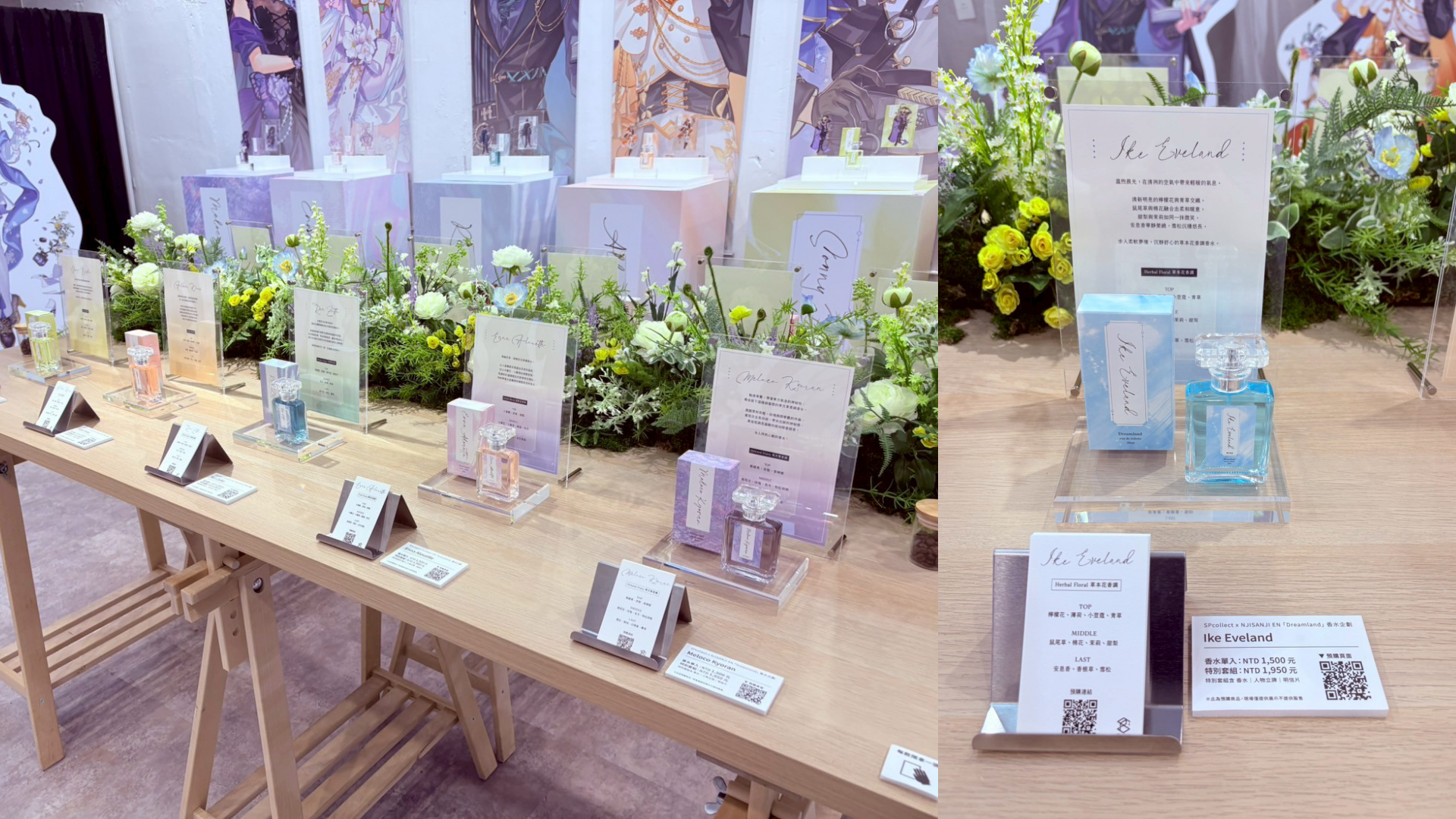赤峰街的 POP-UP 展示空間為粉絲提供實體試香體驗與沉浸式展示空間。現場展出《Dreamland》第三彈 7 款以及第一彈再販 4 款,共計 11 款淡香水,並設有角色等身立牌、掛畫裝飾、香水商品展示以及試香紙試聞體驗拍照。