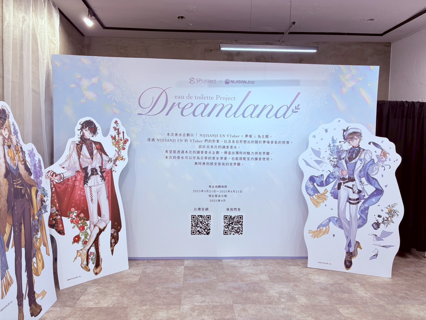 SPcollect 與人氣 VTuber 團體 NIJISANJI(彩虹社) 再度聯名合作,推出《Dreamland》調香香水企劃第三彈。本次以「 NIJISANJI EN VTuber × 夢境」為主題,透過NIJISANJI EN的VTuber們的形象,以及各自形塑出的關於夢境香氣的想像,設計出本次的調香香水,傳達出獨特的魅力與世界觀。