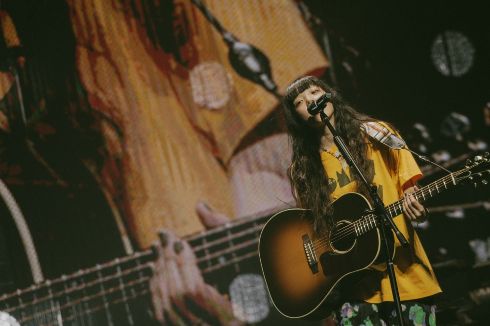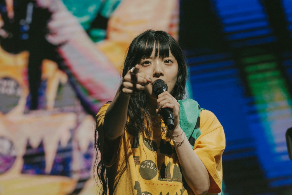介紹完吉他手Qurosawa、八橋老師與鼓手伊吹老師後,宣布接下來將進行不插電演出。演出前聊到前一晚逛夜市的美好回憶,還爆料伊吹老師超會玩氣球射飛鏢,「甚至贏得了一個在這裡不能明講的娃娃!」