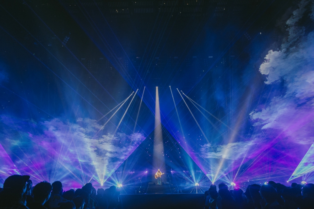 〈兩人的世界〉在純白光的襯托下展現了驚人的層次感,隨後是《非獸性男女》主題曲〈今夜就這樣〉,藍白色調加上粉紫光束交織,留下難忘的視覺印象。