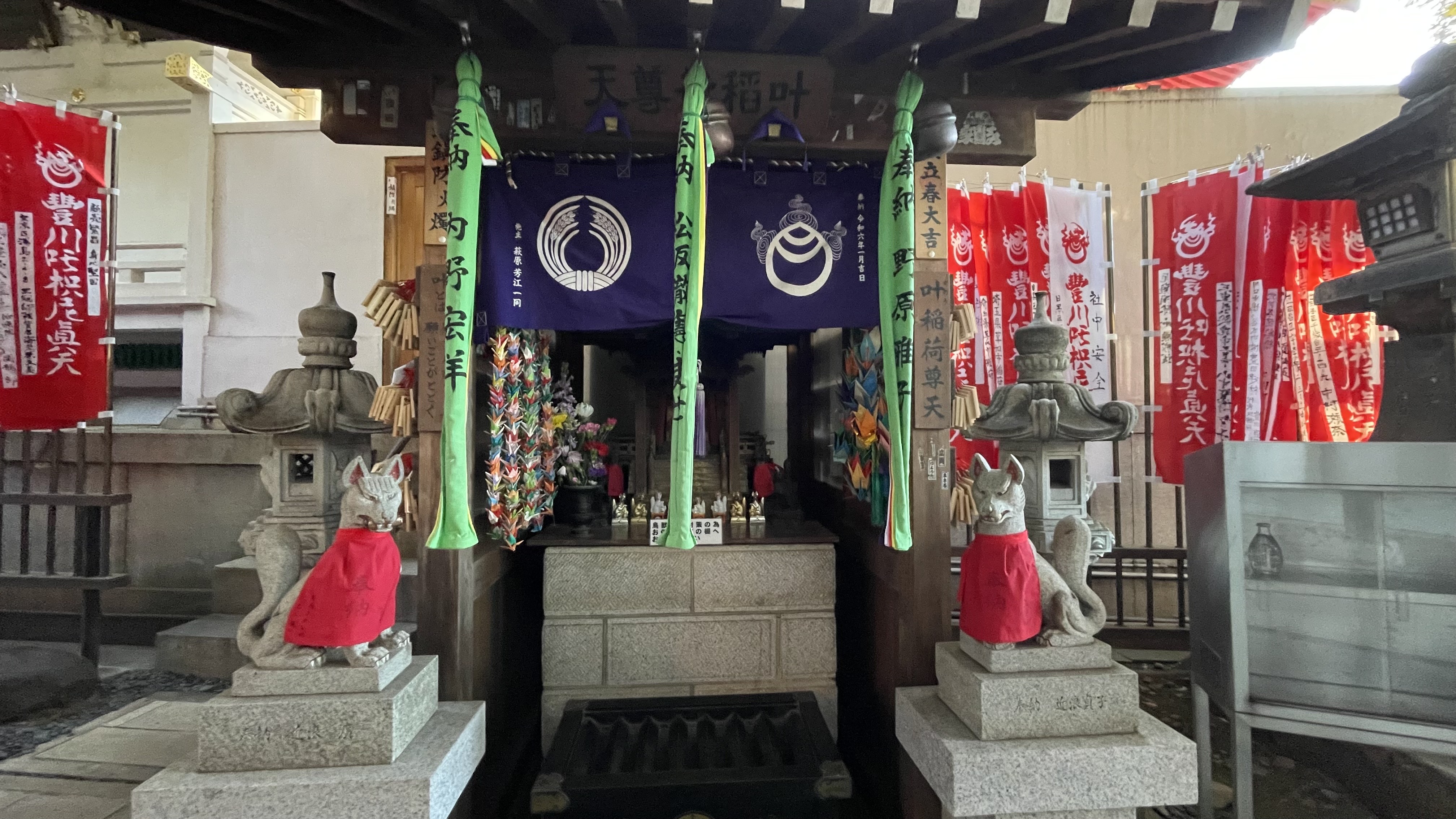 一般人一聽到「稻荷」,容易聯想到狐狸神社,不過這裡供奉的主神是豐川吒枳尼真天,一位守護佛法、靈驗無比的善神。傳說中,吒枳尼真天手上背著稻穗、騎著白狐,因此也逐漸被人們親切地稱作「稻荷神」,這個名字一直流傳到今天。