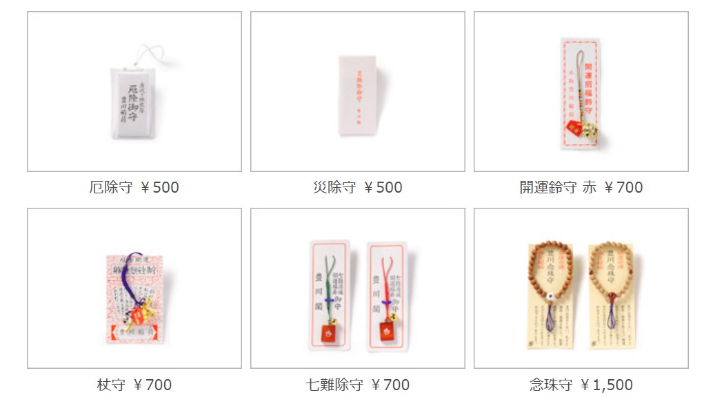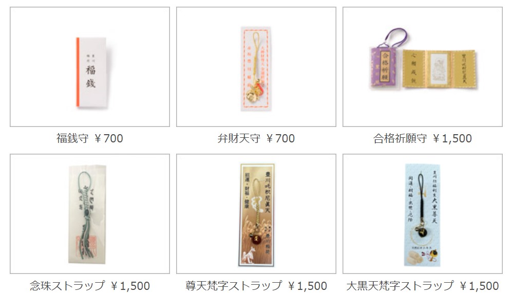 境內能祈求的御利益非常多元,也因此授與品的種類格外豐富。除了常見的開運、交通安全、安產祈願御守之外,還有能夠消災解厄的厄除守、災除守,另外因為豐川稻荷是佛教寺院,也有融入佛教元素的御守,像是念珠造型以及有梵字設計等的特別御守,既有質感,也適合隨身攜帶,為心願帶來溫柔守護。