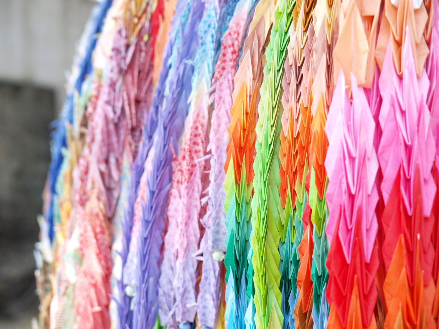 提到千紙鶴,最令人印象深刻的場景,莫過於廣島和平紀念公園內,數以萬計、色彩斑斕的千紙鶴。這背後的故事來自一位因原子彈後遺症罹患白血病的女孩——佐佐木禎子。年僅12歲的禎子在病榻上仍懷抱著希望、努力不斷地折紙鶴祈求康復。雖然年幼的禎子最後還是未能戰勝病魔,但她的故事流傳下來,感動了無數日本人,折千紙鶴也成為了祈求和平與希望的象徵。