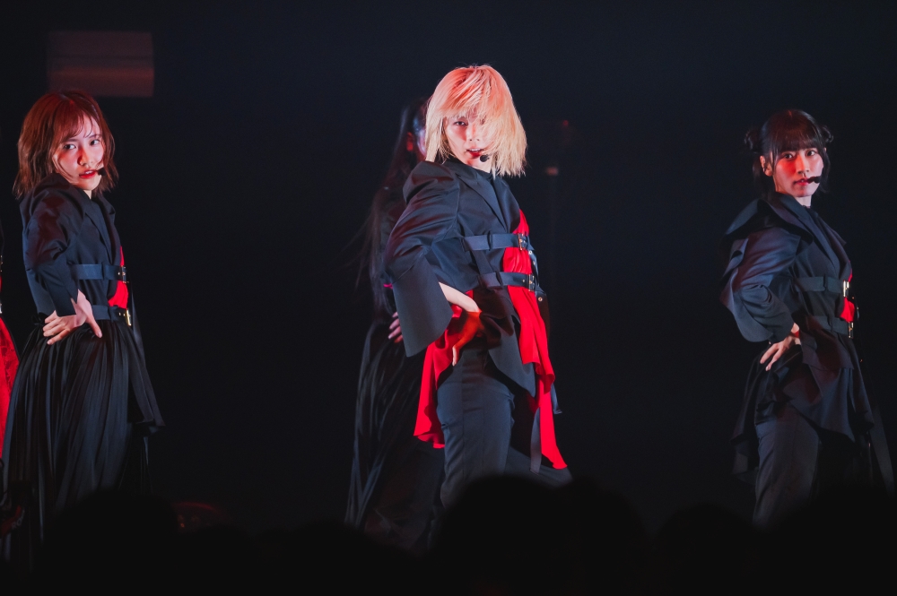以〈Start over!〉作為開場,並接連帶來〈BAN〉、〈流れ弾〉,舞蹈有力、超整齊不說,搭配上一身黑紅相間的酷帥亮眼造型,舞台張力完全展現出「她們不只是一般偶像」的氣勢和實力。