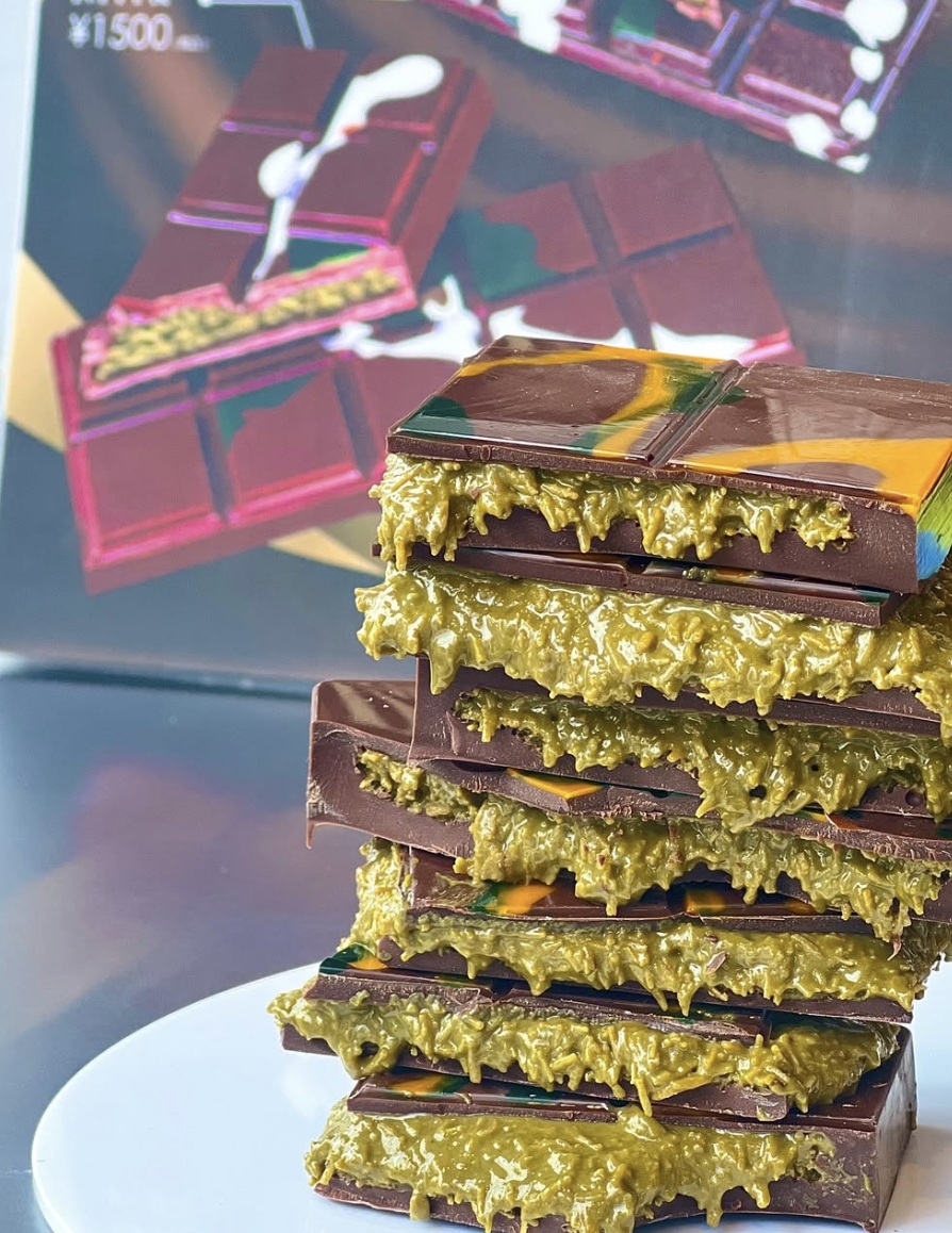吃了一系列杜拜甜點之後,如果還是意猶未盡的話,不妨把由店主親手製作的杜拜巧克力當做伴手禮給帶回去吧!超厚的巧克力磚與滿滿流心內餡,開心果愛好者與巧克力愛好者都絕不能錯過~