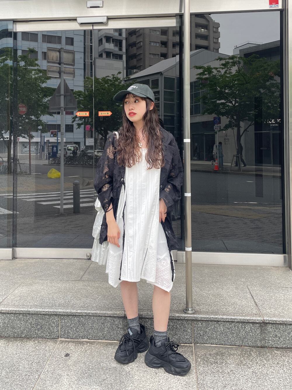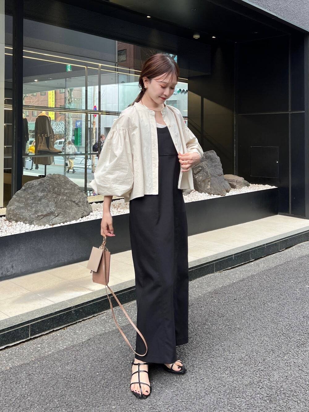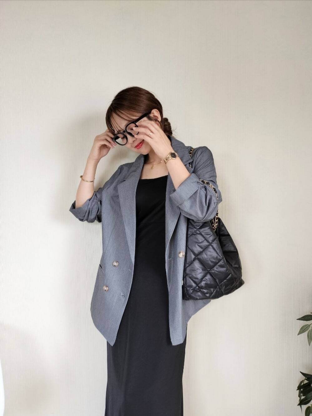 想讓細肩帶洋裝增添些許俐落感的話,不妨試試外搭一件薄款西裝外套,短袖、蕾絲透膚設計,使穿著時更顯舒適涼爽,顏色可選搭黑、灰、卡其的溫柔色系,看起來不會太過正式,反而增添知性優雅氣息,鞋履加上球鞋或樂福鞋,營造隨性又帶點日系的大人感。