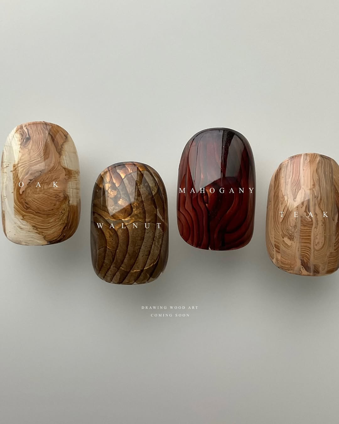 如果想透過指彩打造稍微成熟的氛圍時,不妨嘗試以木質、金屬為彩繪發想,木質紋路可以展現低調沈穩的日系大人味,而金屬系指彩混合銅、銀、金等立體線條,讓指尖也能翻玩出令人為之一亮的豐富視覺。