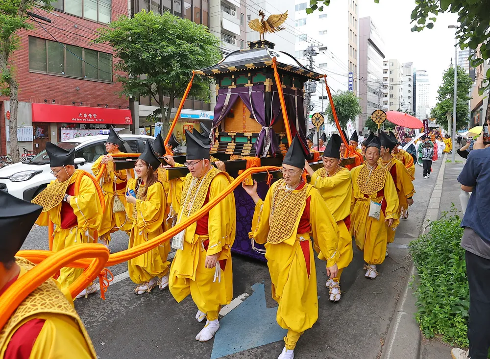這場祭典最重要的看點莫過於最後一天的行程,在白天,會有1000多名群眾身著色彩絢麗,彷彿回到平安時期的衣裳,抬著供奉神宮之神祗的四座神轎緩步遊行於札幌市內,每年都吸引許多的觀光客以及市民共襄盛舉,若有興趣的話,千萬不要錯過囉!