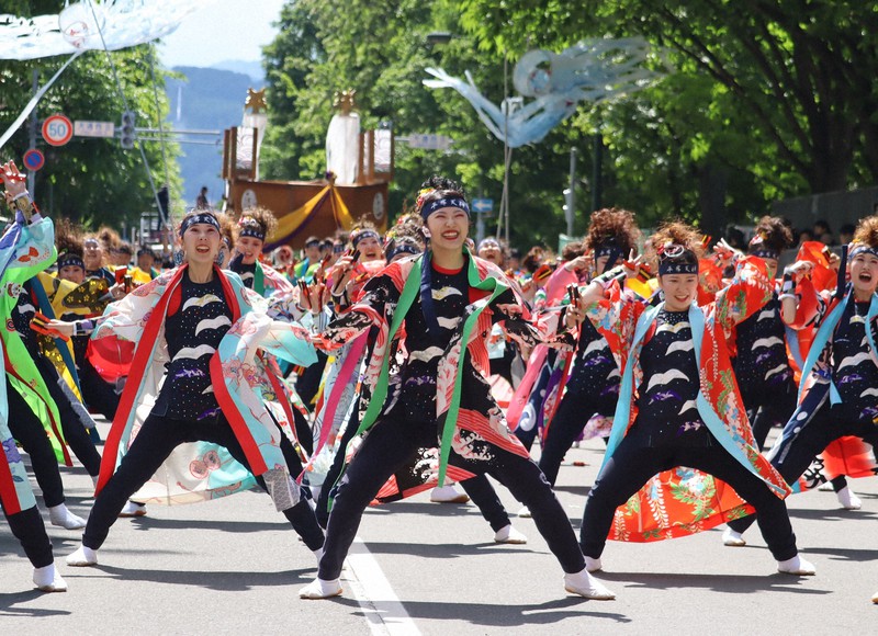 在YOASOKI索朗祭上,各個表演團體會手持鳴子演出舞蹈,並在樂曲中加入傳統的「索朗民謠」,這是過去的北海道漁民在捕撈鯡魚時所哼唱的民謠,鏗鏘有力的歌曲再搭配上熱情的舞步,讓YOASOKI索朗祭有別於一般傳統的日本祭典,展現出了北海道夏日的熱情風貌。