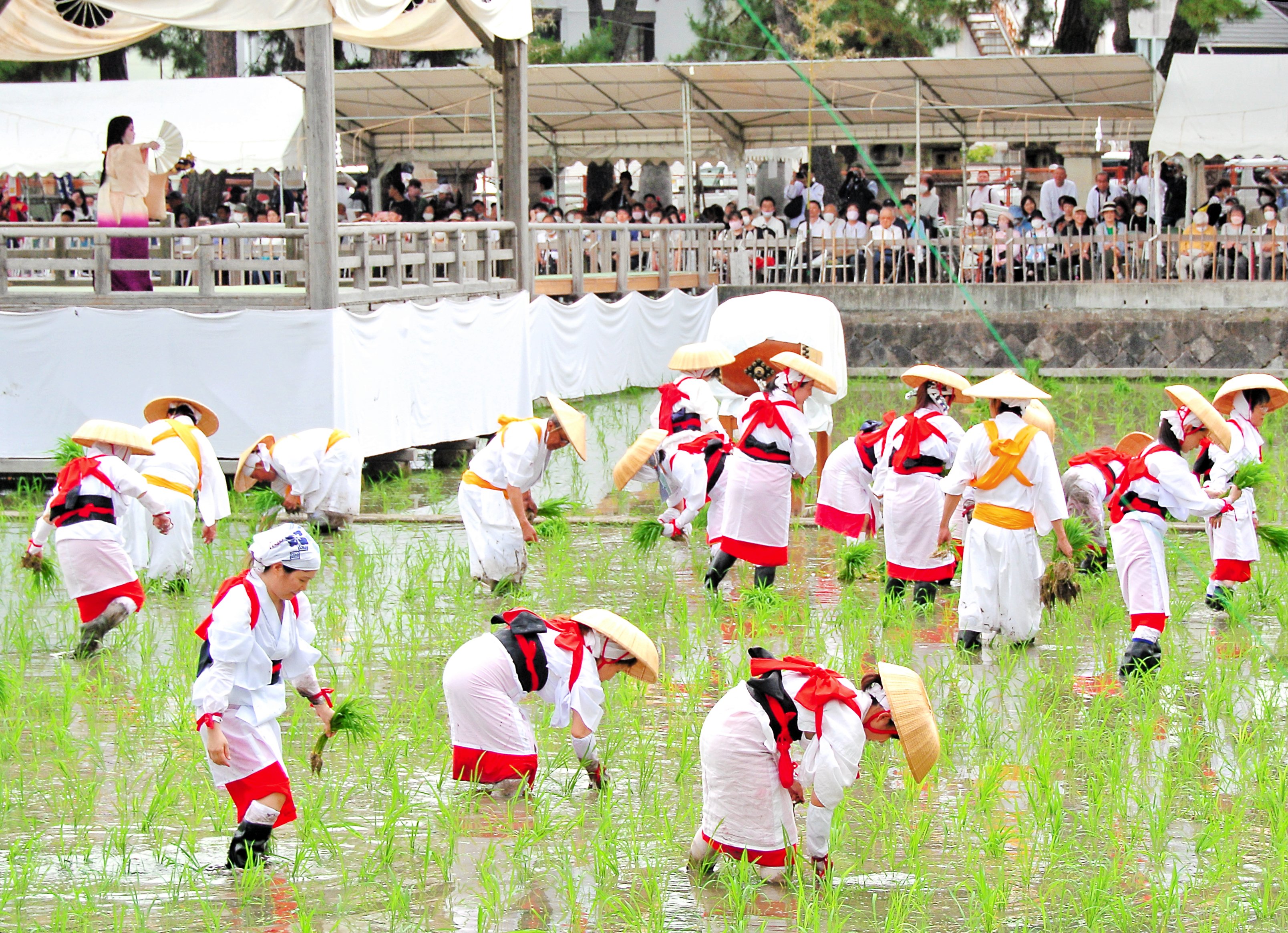 住吉大社每年舉辦的御田植神事是日本知名的傳統祭典之一,除了祈禱幼苗能夠順利成長外,更祈禱今年能夠五穀豐收。在經歷簡單的淨化儀式後,由聖牛拉著木犁耕田,並由經過訓練的巫女在被淨化過的土地上插上秧苗,身穿鮮艷服飾的舞者與樂師也會在一旁奏歌樂舞,據說是為了給秧苗注入健康與活力,御田植神事反映了日本對於農耕生活獨特的重視,若是有機會的話,務必實際體驗看看現場的氛圍唷!