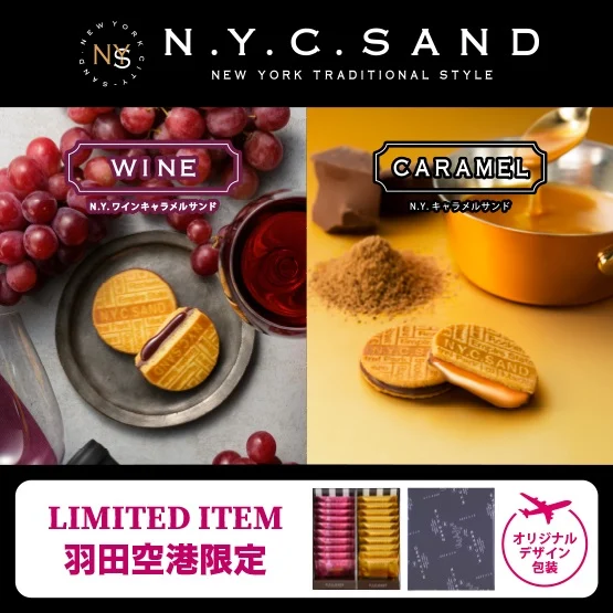 喜歡日本甜點的朋友也有福了!羽田機場限定的 N.Y.C.SAND 綜合禮盒,內含經典焦糖夾心餅乾與葡萄酒口味版本,是自用與贈送親友的理想伴手禮。