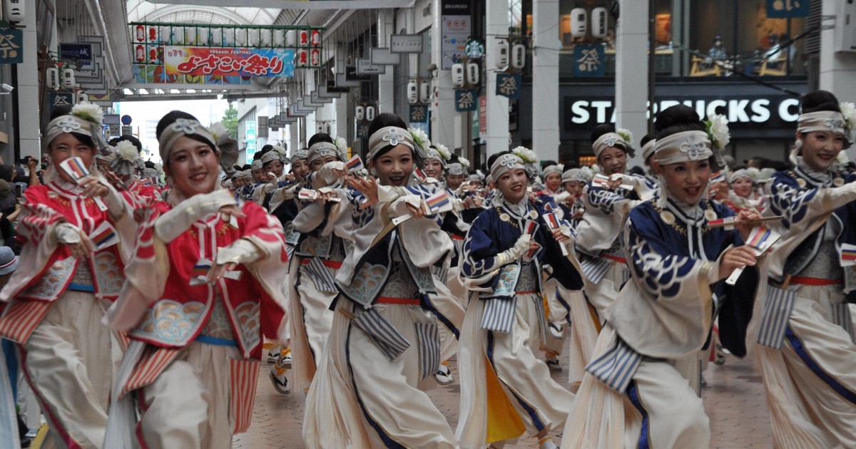 夜來祭(よさこい祭り)是高知縣盛大的舞蹈祭典,也被視為高知的夏季象徵,每當到了這個時節,日本各地的舞蹈團體——約莫200支左右的隊伍都會聚集到高知市內,一同來享受這場一年一度的舞蹈盛宴。