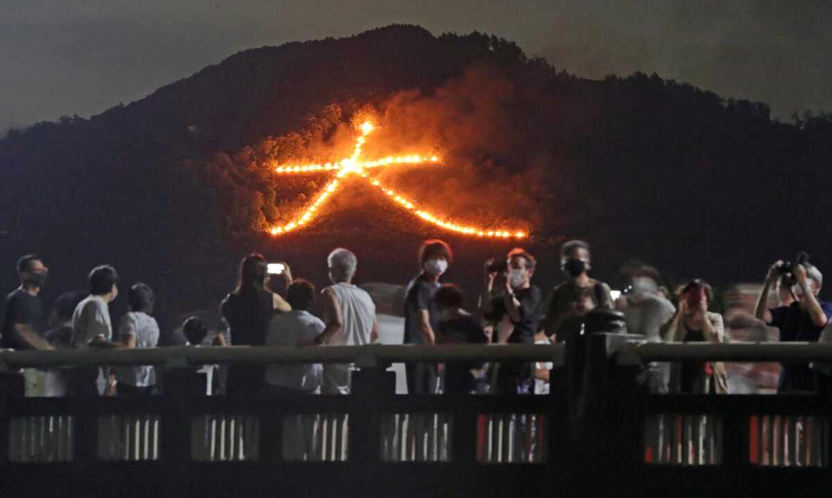 京都的五山送火祭(五山送り火)是京都盂蘭盆節的一項傳統儀式,有著送別祖先靈魂,並引領其返回冥界的意義存在。作為看點的「五山送火」在8/16日晚上8點準時開始,依序點燃京都的五座山,並使其成為巨大的火文字,不僅壯觀,也充滿著莊嚴與靜謐的氛圍,是京都夏季最具代表性的祭典活動之一。