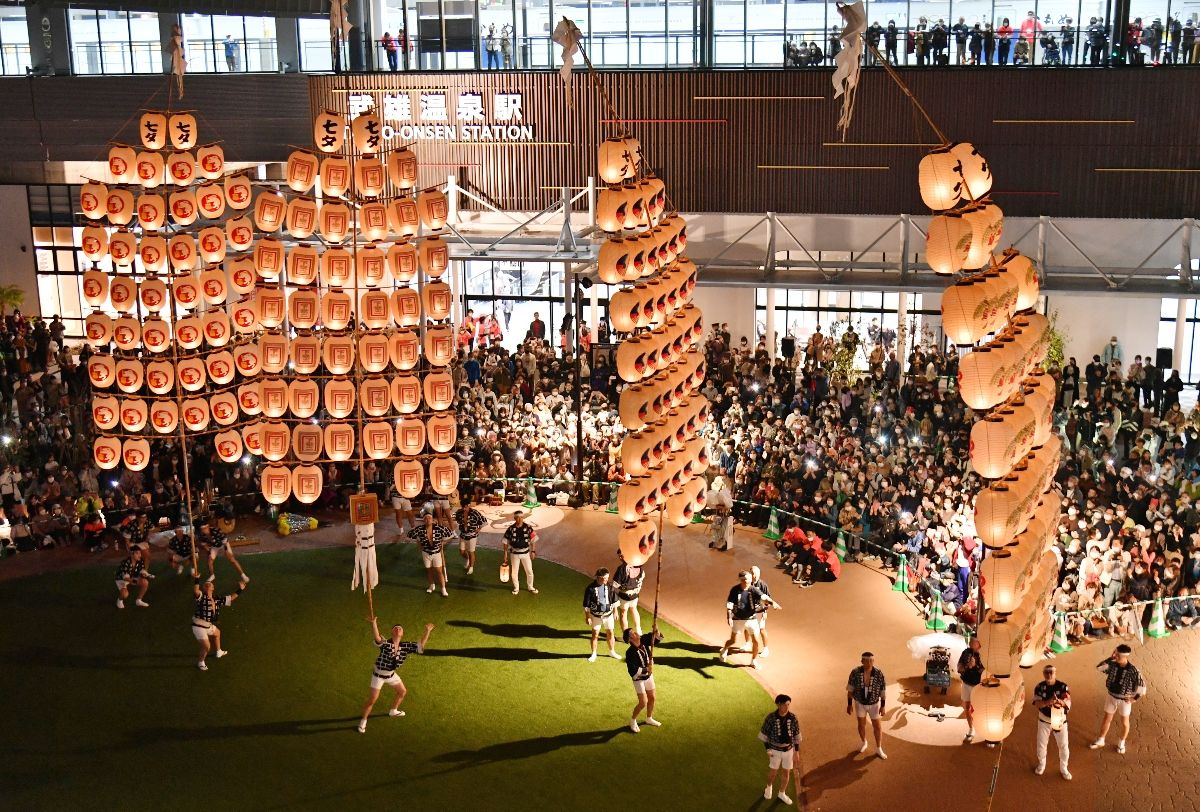 說到山鹿燈籠祭最大的特色,那絕對是「千人燈籠舞」了,有約1000位身穿浴衣的女性頭頂著雅致的山鹿燈籠,在夜色中翩然起舞,無數燈光所交織出的奇幻景象,絕對是你不可以錯過的浪漫風情!