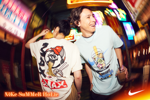 以「NIKE SUMMER HOLIC」為主題,推出結合拉麵與珍珠奶茶圖案的創意 T 恤,打造一場玩味十足的特別企劃!