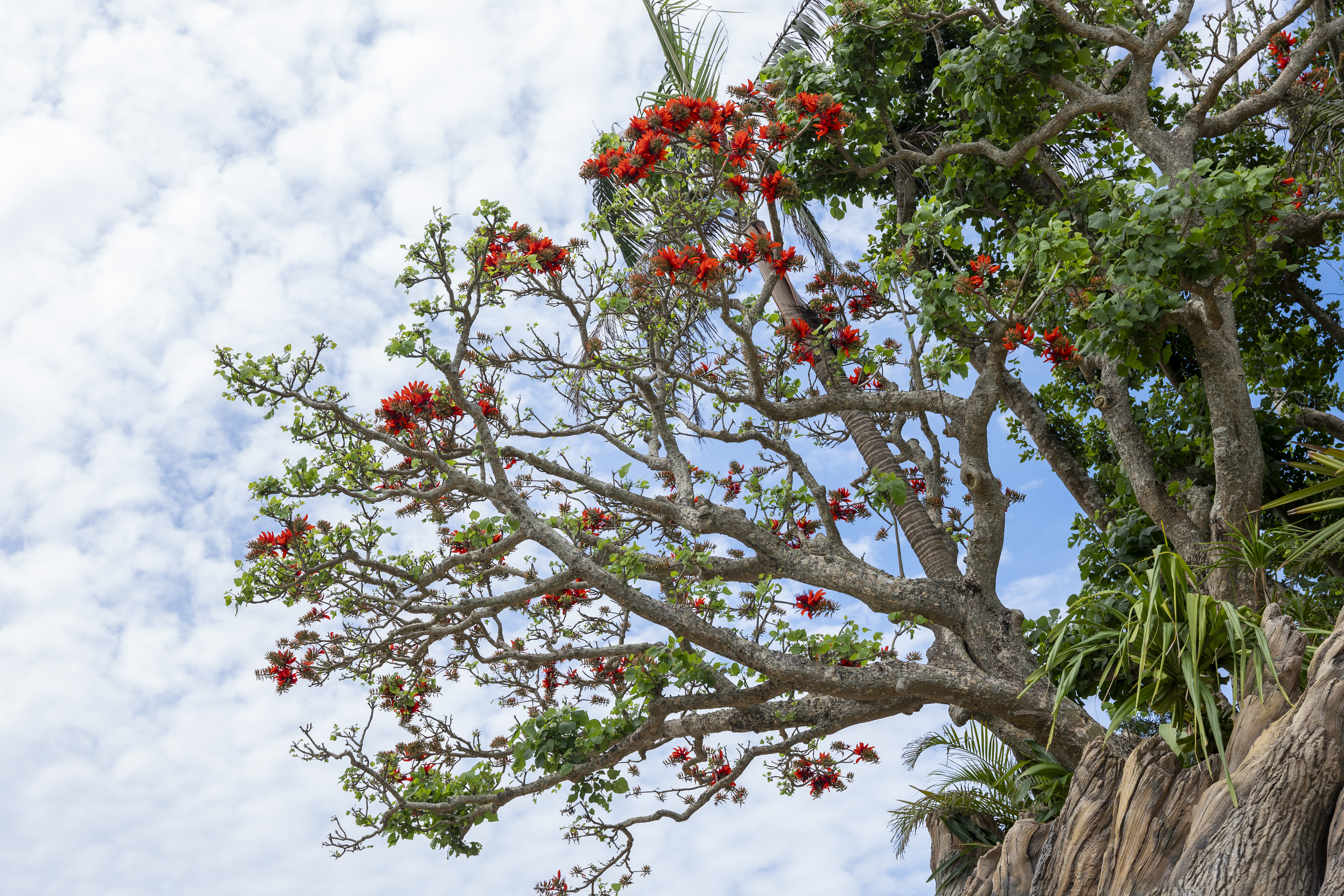 此外,象徵沖繩的縣花——鳳凰木,每年4至5月會綻放鮮紅花朵,傳說中其花況能預示當年氣候與颱風動向,花語包含「夢」、「生命力」、「活力」與「和諧」,象徵著逆境中綻放的力量與希望。