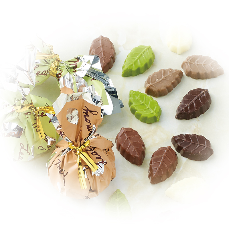 秉持著「讓真正美味的巧克力變得更親民、更貼近生活」的理念,創立於1988年的「Mon Loire(モンロワール)」推出各種巧克力產品。其中最受歡迎的「樹葉記憶(リーフメモリー)」是將葉片造型的小巧克力裝入繽紛可愛的巾着袋中,每款巾着內含三種不同口味:綠袋為抹茶、牛奶、黑巧克力;橙袋為牛奶、白巧克力、摩卡;桃袋則有蔓越莓、焦糖與牛奶口味,共有超過20種口味變化,從經典到水果風味皆備,讓人驚喜連連。 樹葉記憶不僅外觀吸睛,也能感受到正統巧克力工藝的美味,是兵庫地區極具人氣的伴手禮。