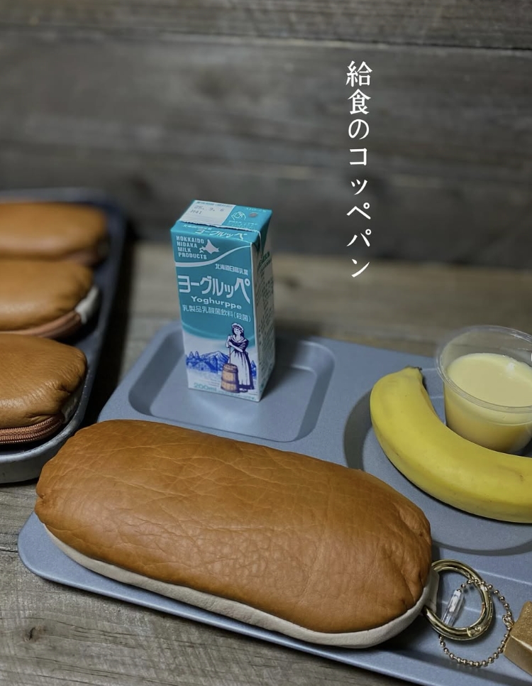 再來則是經常能在日本小學營養午餐當中看到的麵包(コッペパン),擺在餐盤上就好像真的麵包一樣,完美打造出麵包的蓬鬆感,一點也不扁塌。長條形的設計很適合拿來當作筆袋或化妝包使用。