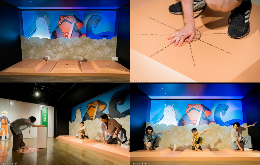 在這一關,你將化身為火影忍者中的「新三忍」之一,站上拍照台,擺出帥氣的通靈召喚姿勢。現場工作人員會教你如何正確結印,只要按下按鈕,背後的特效就會同步發光,即可拍出一段氣勢十足的忍術影片!如果三人一起挑戰,更能還原經典場面,體驗合作召喚的震撼感!