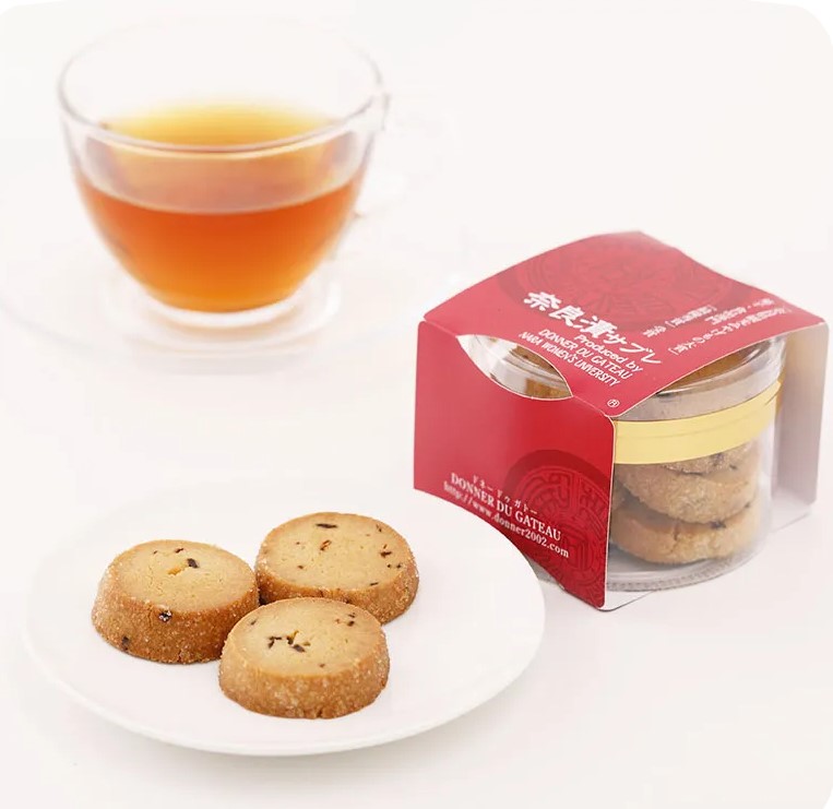 奈良漬是奈良縣的傳統食文化,將蔬菜先以鹽醃製,再浸漬於酒粕中熟成而成。而「奈良漬奶油餅乾(奈良漬サブレ)」是奈良女子大學與「Donnez du gateau(ドネー ドゥ ガドー)」攜手開發的創新燒菓子,巧妙運用奈良漬的成分與風味,打造出別具特色的口感。乍看之下似乎是意外的組合,但奈良漬獨特的香氣與奶油的濃郁風味相得益彰,酥脆輕盈的口感更讓人一口接一口、愛不釋手。烘焙過程中酒精已揮發,即使是孩童或不擅長飲酒的人也能安心享用。