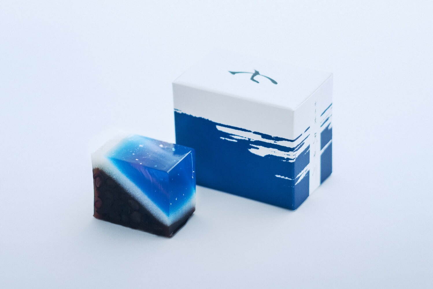 ■ 夜空的深邃:運用深藍色和紅色調色的琥珀羊羹,營造出神秘夜空的氛圍