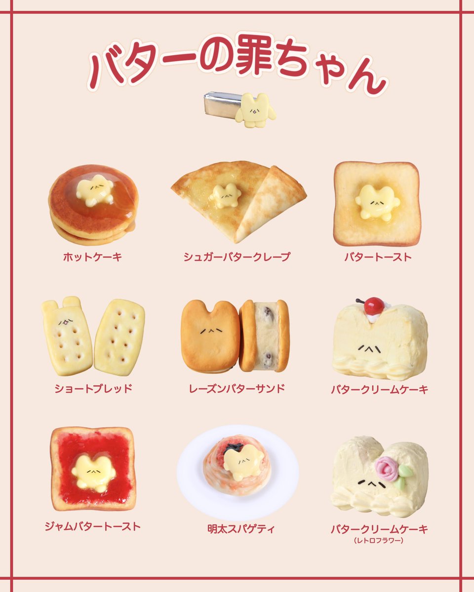 看到上頭放著奶油的甜點或料理,相信不少人應該都會覺得整個熱量滿滿的感覺,吃下去超級罪惡的吧?這系列被稱作「バターの罪ちゃん」(暫譯:罪惡奶油)的作品便是從此緣由而來。可以看到被稱作「罪惡」的奶油表情相當無奈。