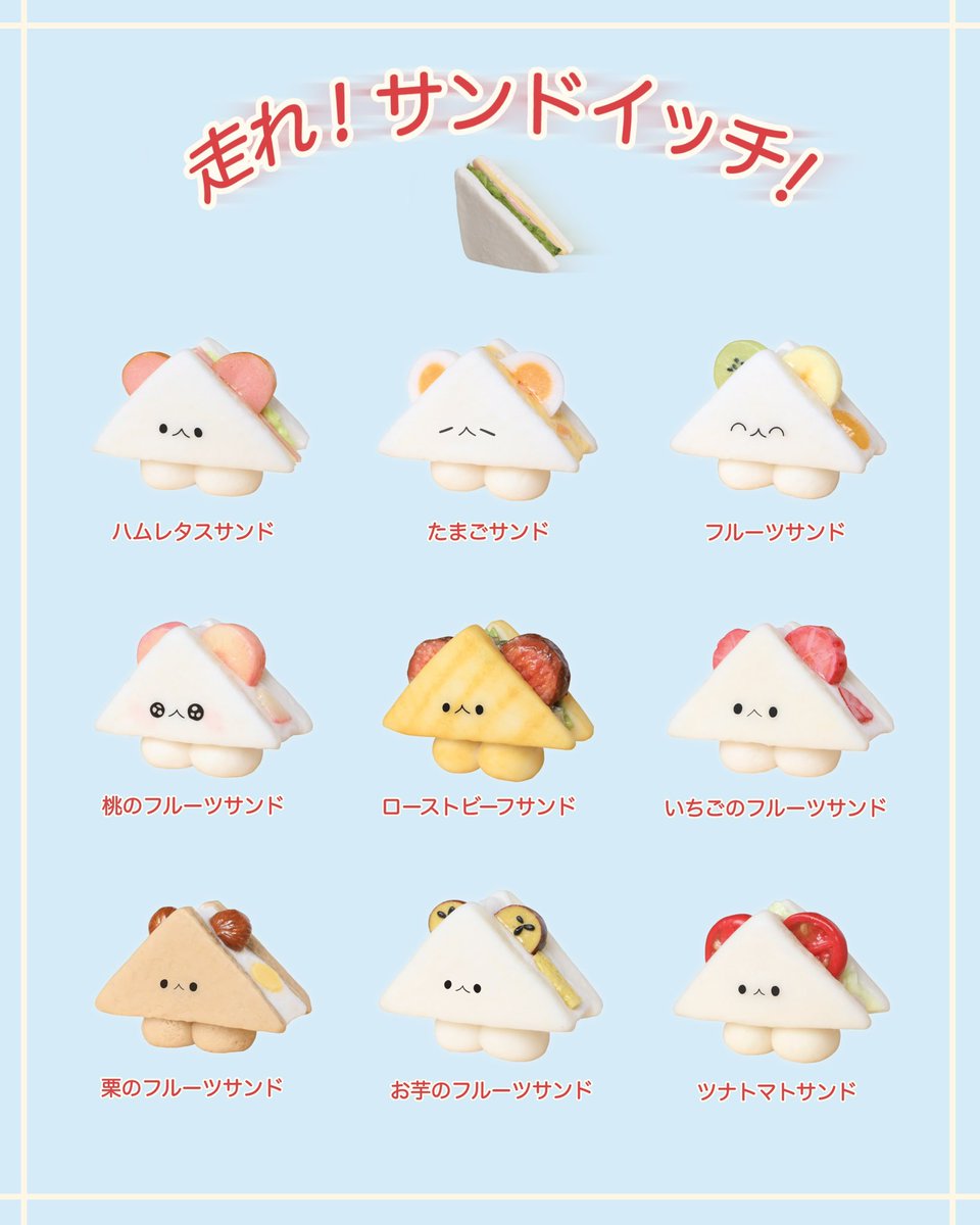 「走れ!サンドイッチ!」(暫譯:跑吧!三明治)這系列是長著腳的三明治,感覺隨時都會跑起來一樣。每個三明治都有著各自的夾心內餡,有火腿、蛋、水果等各式各樣的夾心。除了夾心的不同之外,每個款式的表情上也有些微的變化。