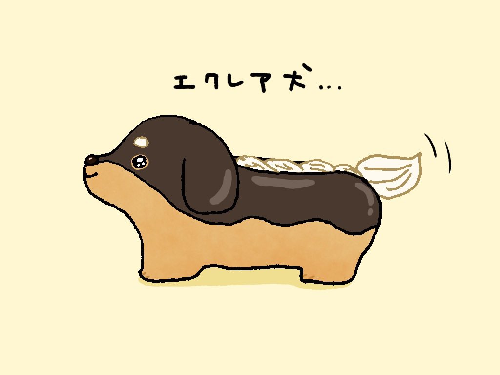 插畫版的閃電泡芙狗狗也頗惹人憐愛,從插畫當中也能看出小細節:那就是狗狗的尾巴竟然是閃電泡芙的奶油內餡,狗狗搖著奶油尾巴的畫面真的是想讓人立即「抱緊」。