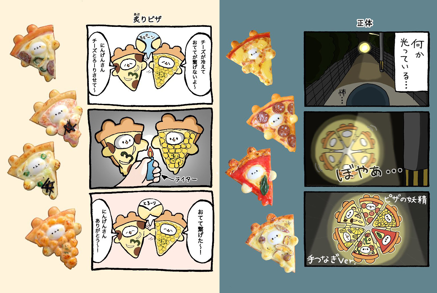 不知道是什麼生物,被稱作是「ピザの妖精」(暫譯:披薩妖精)的謎之生物,有著在夜晚看起來像是會發光一樣的特性,聚集在一起時,彼此會手牽著手,合體成一個大圓圈,看起來就像是一整塊完整的披薩一樣。