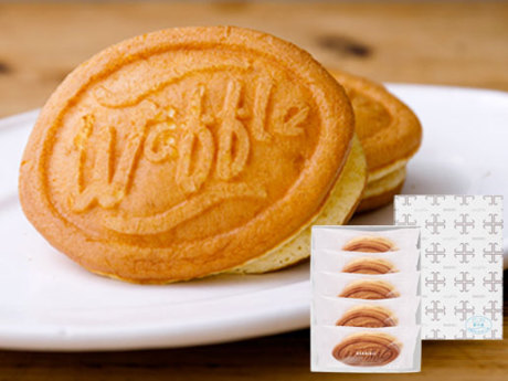 白十字的招牌洋菓子「白十字鬆餅鬆餅(白十字のワッフル)」可以說是岡山地區家喻戶曉的在地甜點。與印象中格子狀、酥脆口感的歐式鬆餅不同,白十字的鬆餅是受到日式點心「銅鑼燒」啟發所創,誕生於1957年,以打發的蛋黃與蜂蜜製成輕柔麵糊,再混入蛋白霜烘烤而成,中間夾入濃郁滑順的卡士達奶油,口感綿密、甜而不膩。