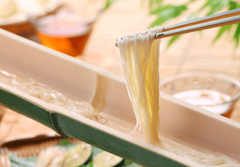 岡山縣鴨方町自江戶時代以來便盛行製麵工藝,其中「鴨川手延素麵(かも川手延素麺)」是當地人家中常備的傳統美食。延續數百年的「手延製法」,以手工反覆拉伸、熟成,使麵條口感滑順Q彈、嚼勁十足。而製麵所使用的水源來自名山「遙照山」,加上高梁川流域優質小麥與瀨戶內海天然鹽,再搭配乾爽晴朗的冬季氣候,使得這裡成為手延麵的理想產地。