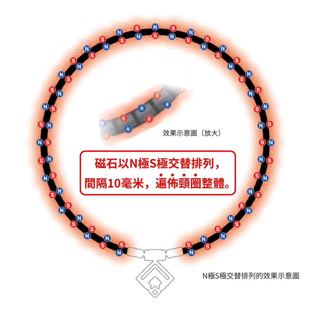 獨家的N極S極交替排列技術!擴散式磁力至身體深層