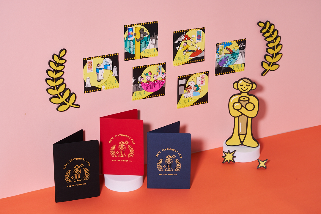 在尺上就能觀看由unpis執導的文具大影業系列電影!「動畫閃尺」現正熱映外星人入侵地球科幻片和浪漫愛情故事,劇情隨著不同觀看角度產生趣味變化;可愛角色也躍上A4資料夾!結合半透明材質效果,在更換文件時,電影主角竟驚喜變身,同步搭配盲抽限定的「壓克力造型夾」,讓屬於你的命定角色幫你把資料整理得井然有序;用行動支持最愛的電影角色!「金理想獎得獎名單郵票組」讓你自由決定得獎名單,6大片單任你選擇;戰利品多到裝不下,還有專屬「購物袋」現場支援!耐用PP材質搭配可愛電影場景及底片緹花織帶,輕鬆裝載你的文具電影夢。